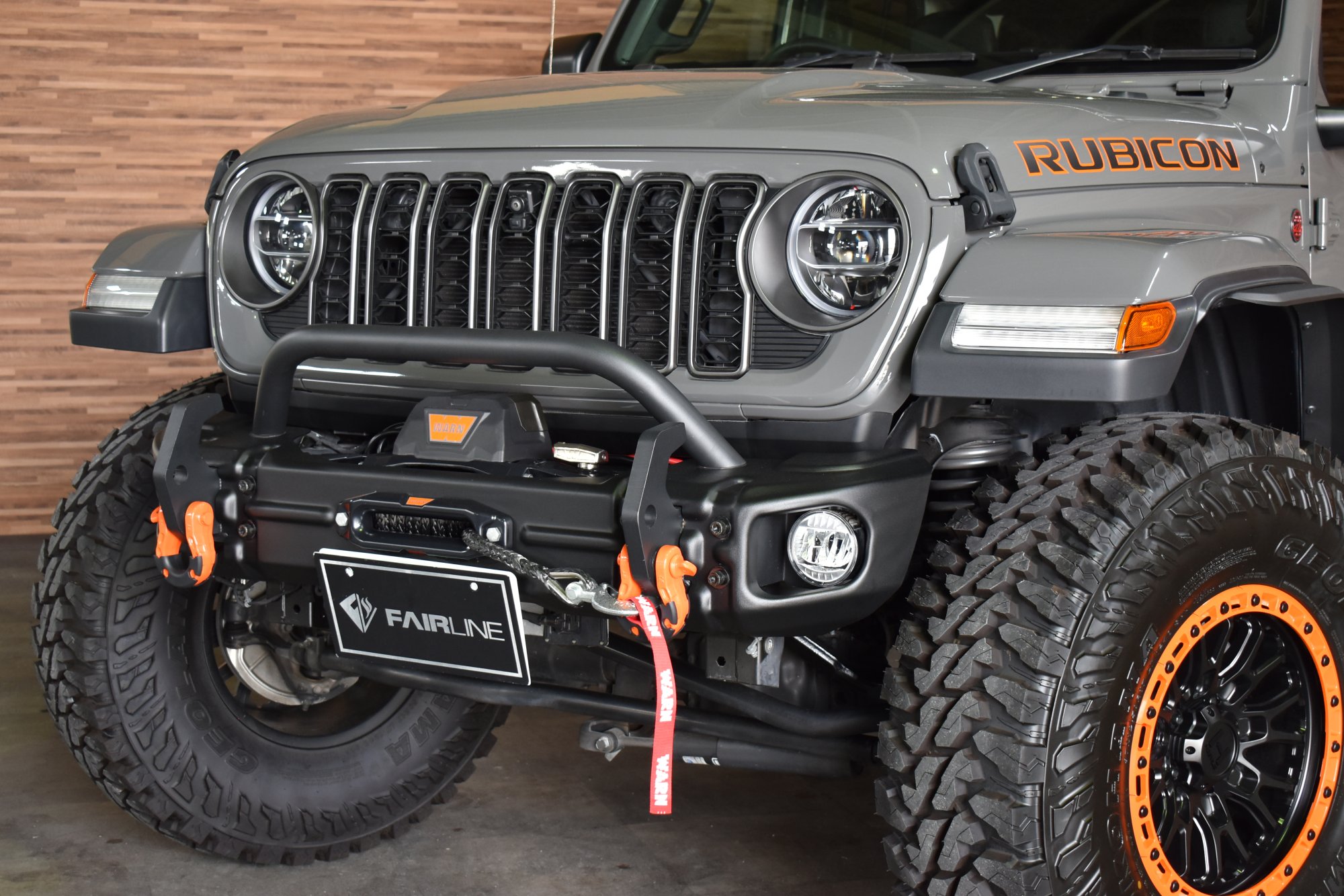 令和4年式 ジープグラディエーター ルビコン 4WD 3,600cc V6エンジン 8速AT 走行距離5,000km スティンググレー 黒革 ディーラー車1オーナー 3.5インチリフトアップ リアラッピングカスタム オレンジフック ショートアイアンバンパー WARNウインチ 背面スペアタイヤ 電動ステップ FSBカメラ ETC2.0 後期グリル フェンダーエクステンション HOSTILE17インチブラックAW 37インチM/Tタイヤ LEDヘッドライト&フォグライト