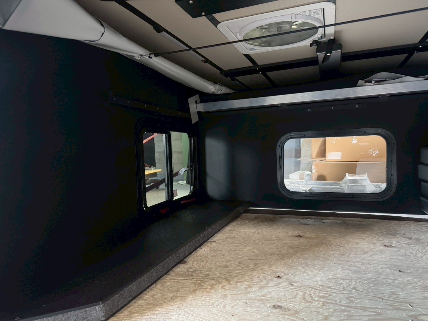 キャブオーバーベッドブラックビニールマットレス リア電動ルーフベントファン
