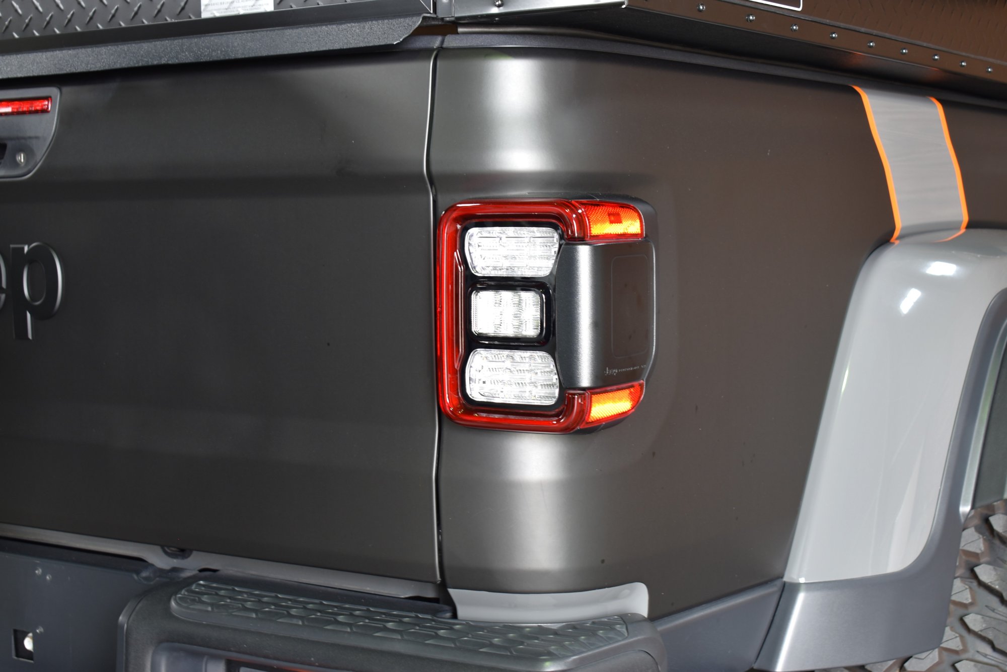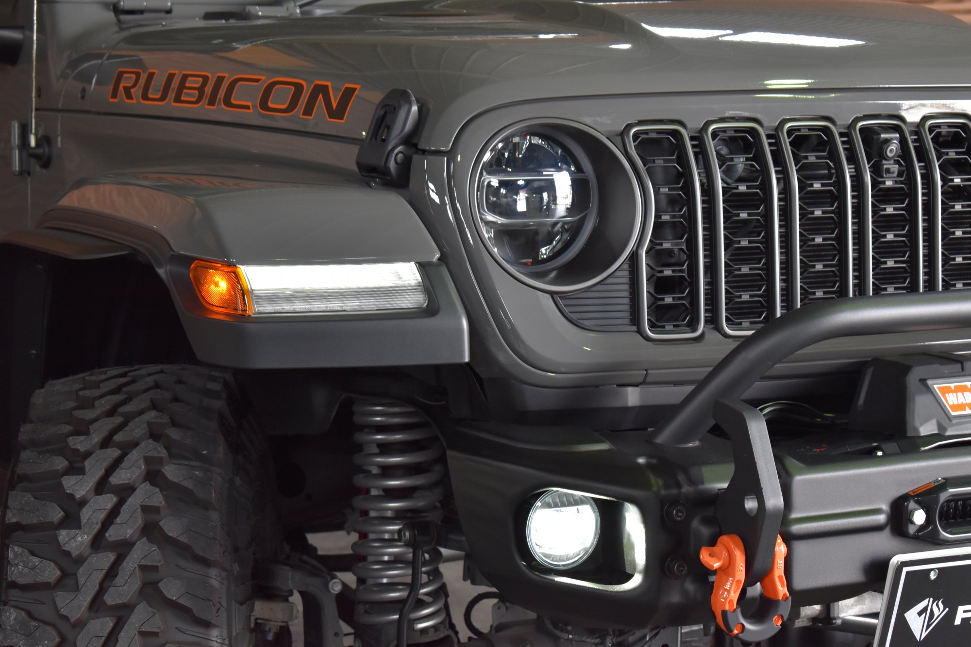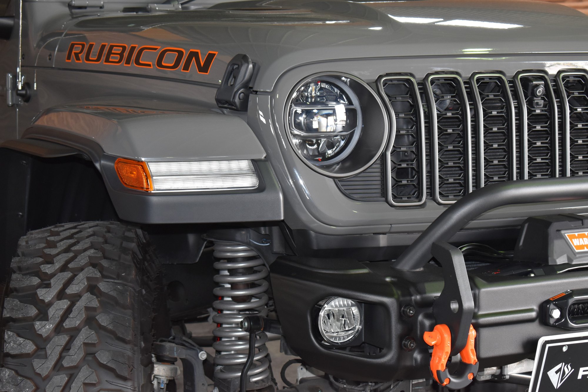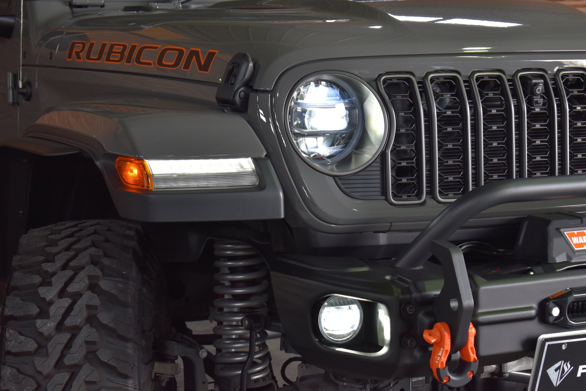 令和4年式 ジープグラディエーター ルビコン 4WD 3,600cc V6エンジン 8速AT 走行距離5,000km スティンググレー 黒革 ディーラー車1オーナー 3.5インチリフトアップ リアラッピングカスタム オレンジフック ショートアイアンバンパー WARNウインチ 背面スペアタイヤ 電動ステップ FSBカメラ ETC2.0 後期グリル フェンダーエクステンション HOSTILE17インチブラックAW 37インチM/Tタイヤ LEDヘッドライト&フォグライト