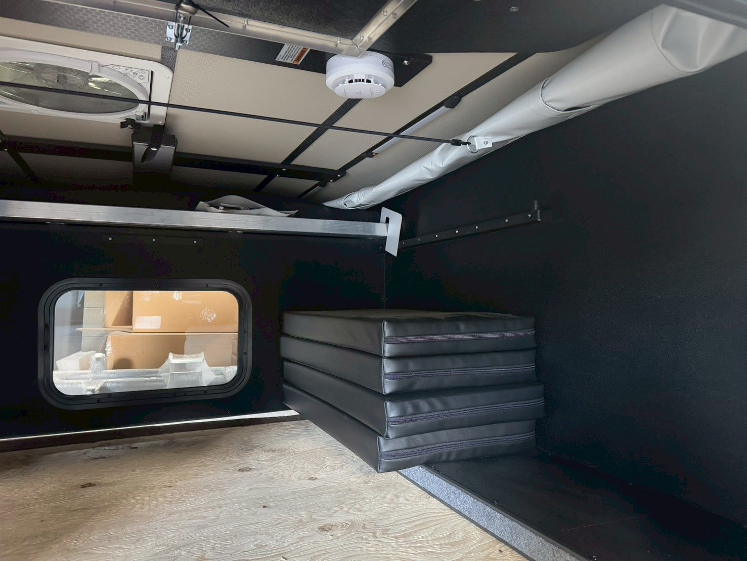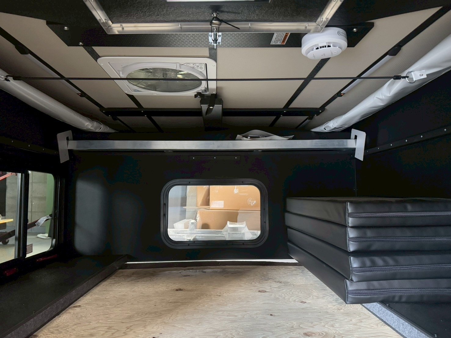 キャブオーバーベッドブラックビニールマットレス リア電動ルーフベントファン