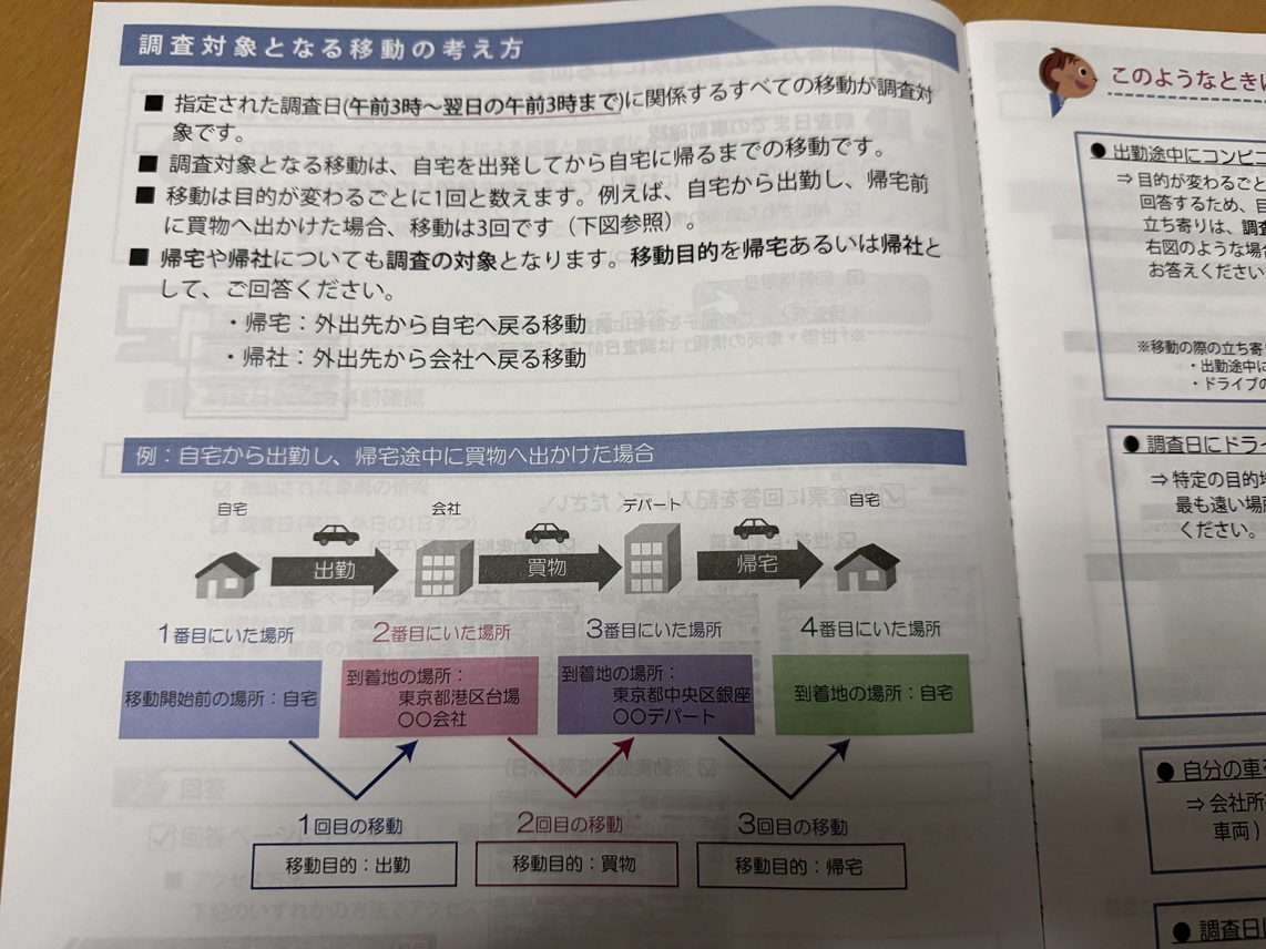 目的地・移動目的・出発時間・到着時間・