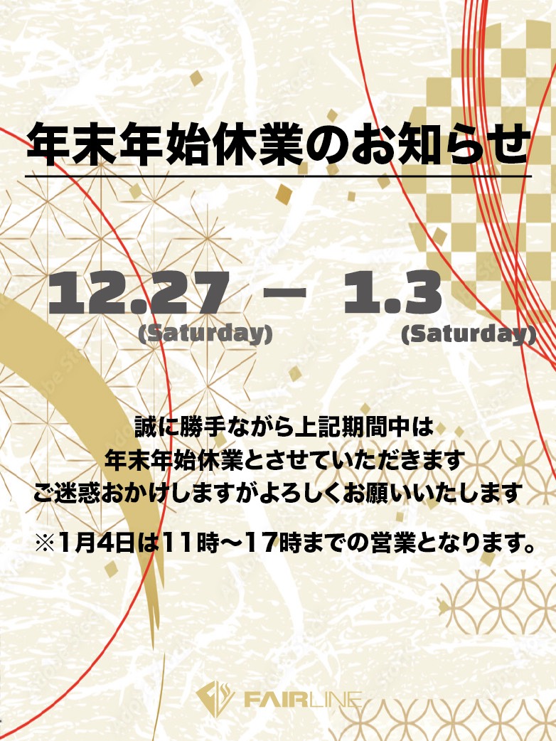 さてフェアラインの年末年始は、