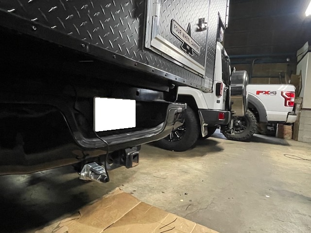 荷台からキャンパーがはみ出ているため