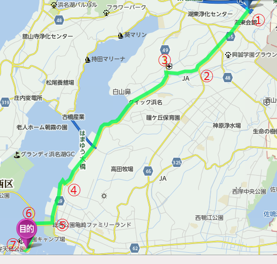 ⑥雄踏大橋を渡ってT字路交差点を左折。